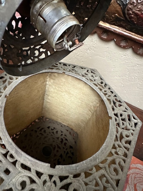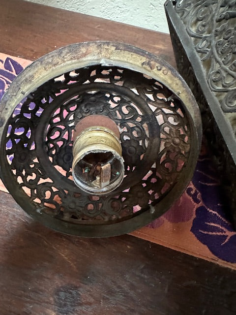It was used with an eletrical socket and had wiring, probably as an outdoor patio light in it's last incarnation. I'm debating wether to revamp it or leave it as is.
