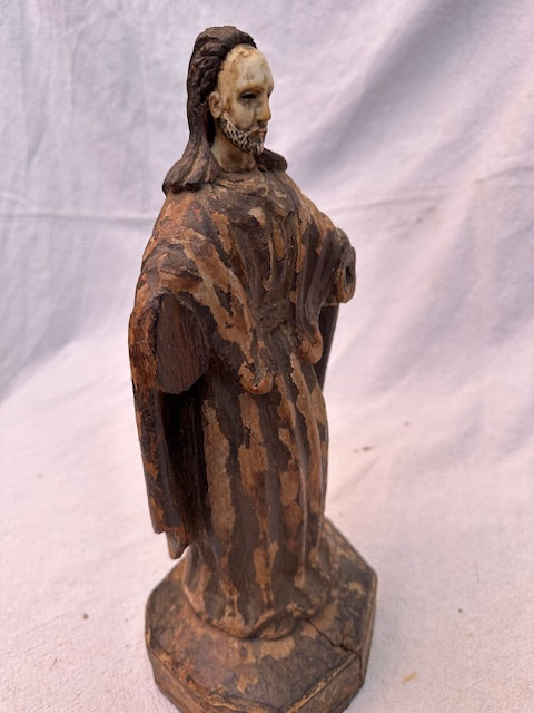 Antique Hand Carved Hand Painted Santo With Bone Face