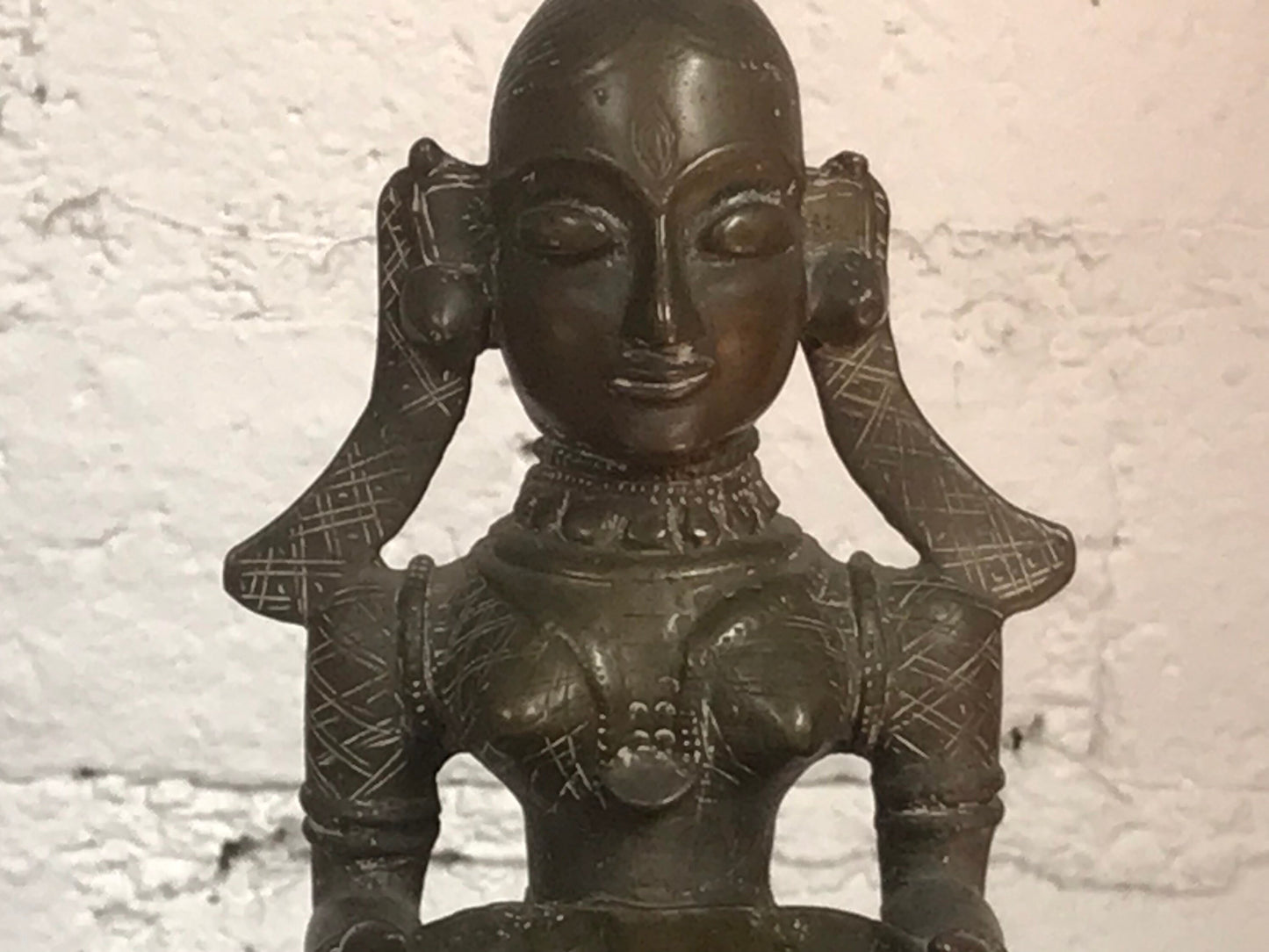 Antique Hindu Bronze Sculpture of Woman Holding Diya