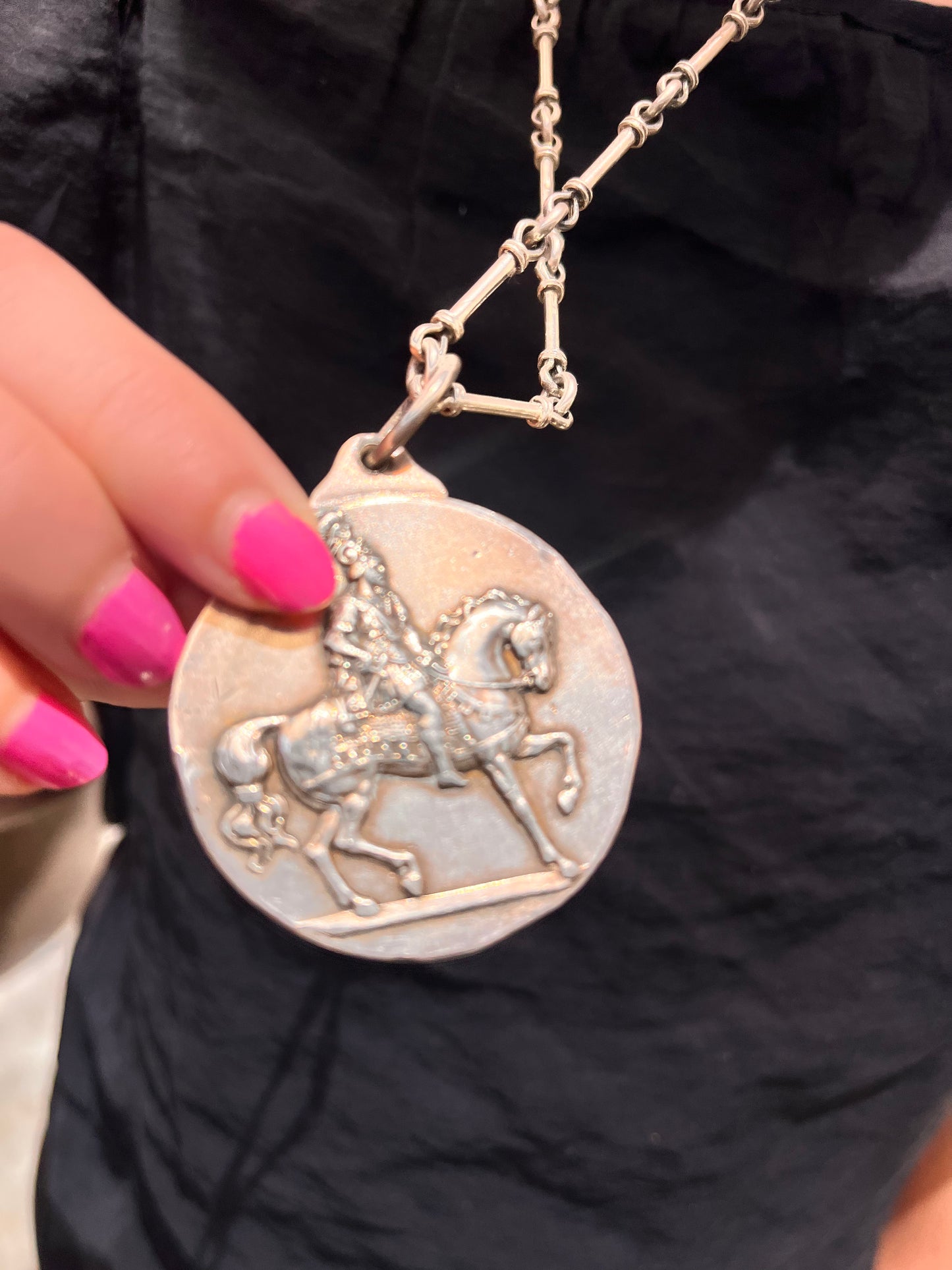 It's a very unique and handsome double sided horse & knight medallion made my Mappin and Webb!