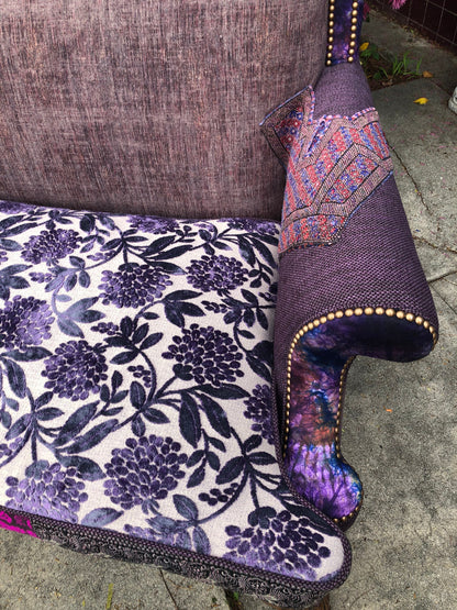 Recycled Reupholstered 1980s Sofa in Shades of Plum