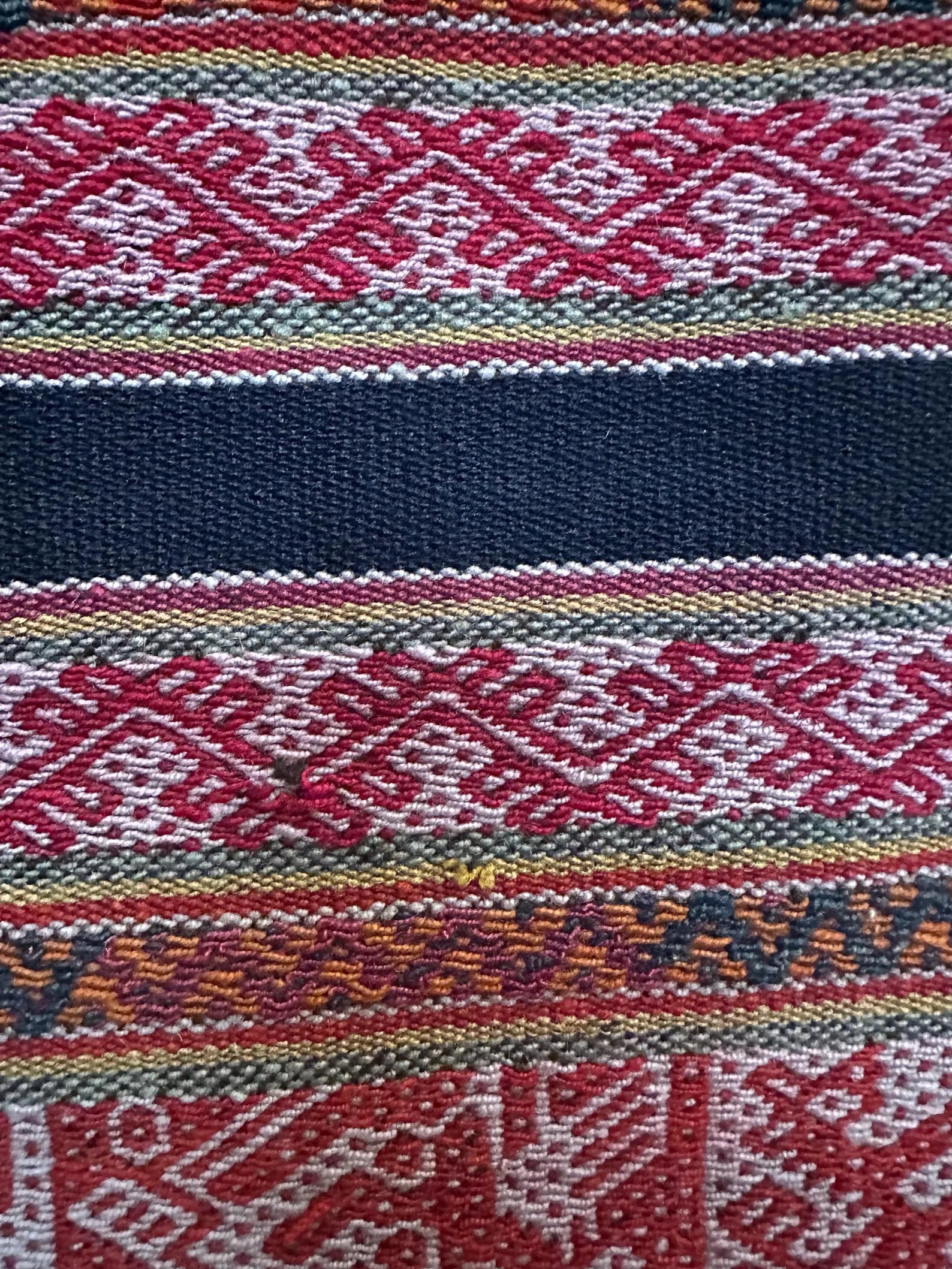 Vintage Peruvian Manta Wool Textile - Handwoven 1960s Andean Blanket