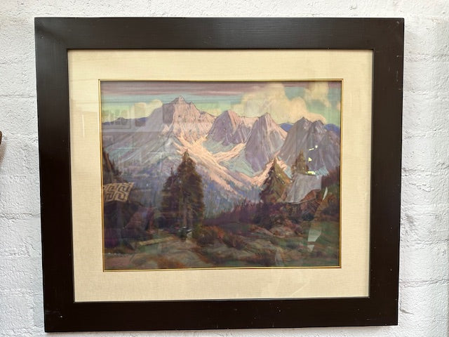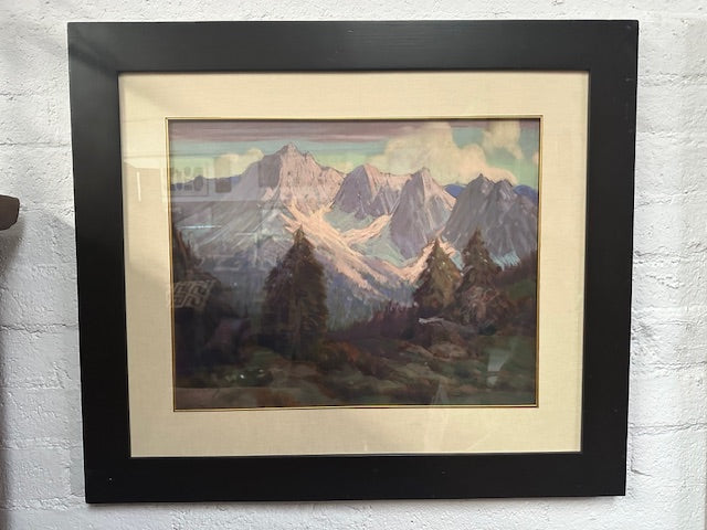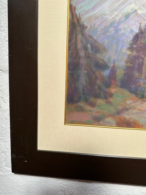 Beautifully mounted within thick textured matt board and encased in its original frame, 3’ wide in a satin back wood with just a couple nicks on the frame cementing it’s prestige in vintage, if not downright antique.