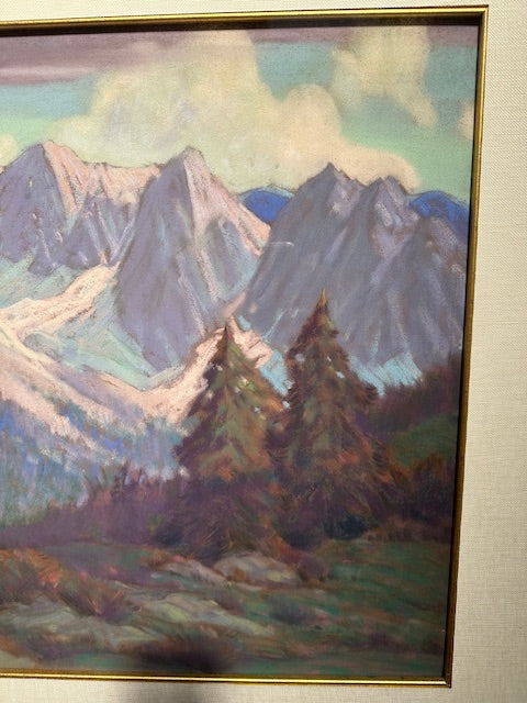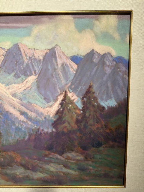 A stunning pastel, possibly in the Sierra’s, that showcases Nott’s skills with pastels, amplifying the light that falls across the the mountains. Nott’s sensitivity to to the delicacy of the cool lavender light entices one into reflective submission. And the sky, just gorgeous.